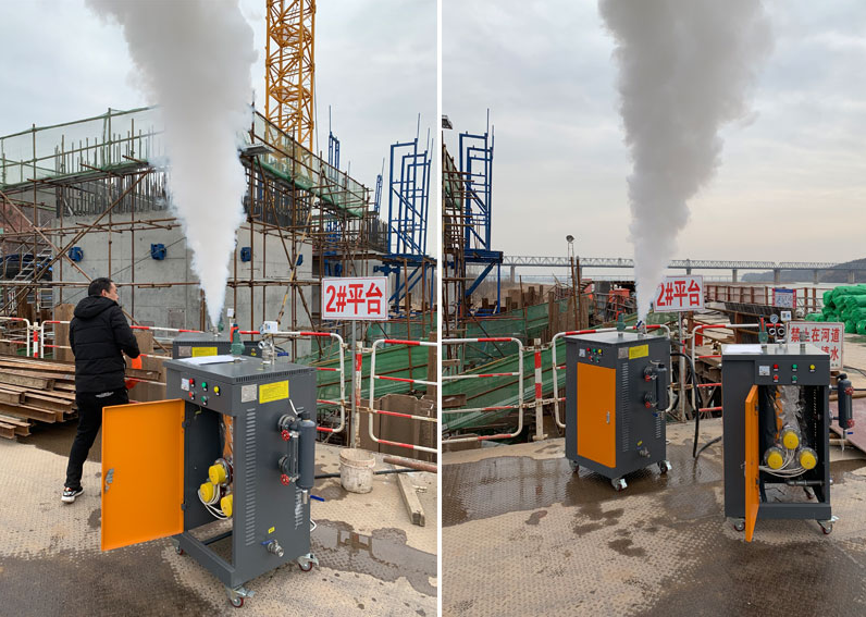 全国咨询热线:18140588010小浪底建筑工地订购了2台72KW电蒸汽发生器作路桥养护使用